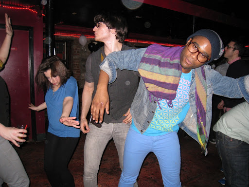 Then we bounced outta the studio to go rock the party in Brooklyn! Such a funky-as-hell-party! We rolled up around 10pm and started rocking some crazy ill funky lovin’ beats! It was Coverboy playin stone cold mackin electro love jams for a couple hours, then I rocked the beats w/ Strawberry & Ness for a hot minute. This was our first party that we listed in Time Out mag and it brought in some funky peeps, including the yellow telletubby! Marcos from Chico Mann/Antibalas came to show some love- we were so happy cuz this guy is funky to the 9’s!
