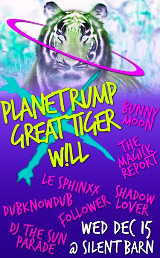 We are super amped to announce our very special show tonight at Silent Barn. We have been collaborating with Great Tiger and Will Sheridan for months, doing remixes, featured verses, guest guitars, tamborines and shakers on each others tracks, and just being all around superfans of each other! Tonight, we’ve put together an epic feast for your eyes and ears, so come check it out and shake your body down!